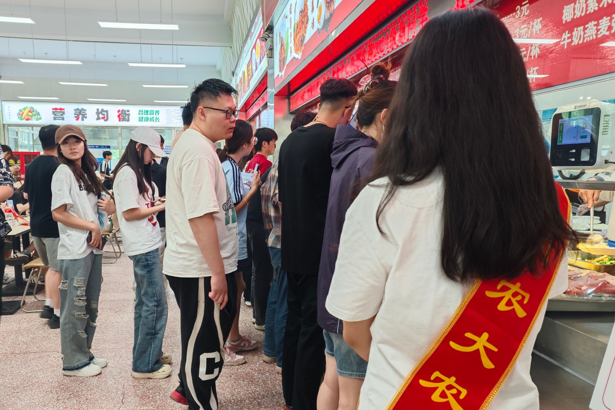 活动期间正值就餐高峰期,志愿者们引导同学们有序排队、按需取餐,倡导节约粮食理念并及时提醒同学们保持安静,避免大声喧哗,维护良好用餐秩序。同时,志愿者们鼓励同学们主动清理餐桌残留垃圾,规范分类放置餐具。志愿者们认真负责的工作态度与细致周到的服务,有效改善了餐厅就餐环境。