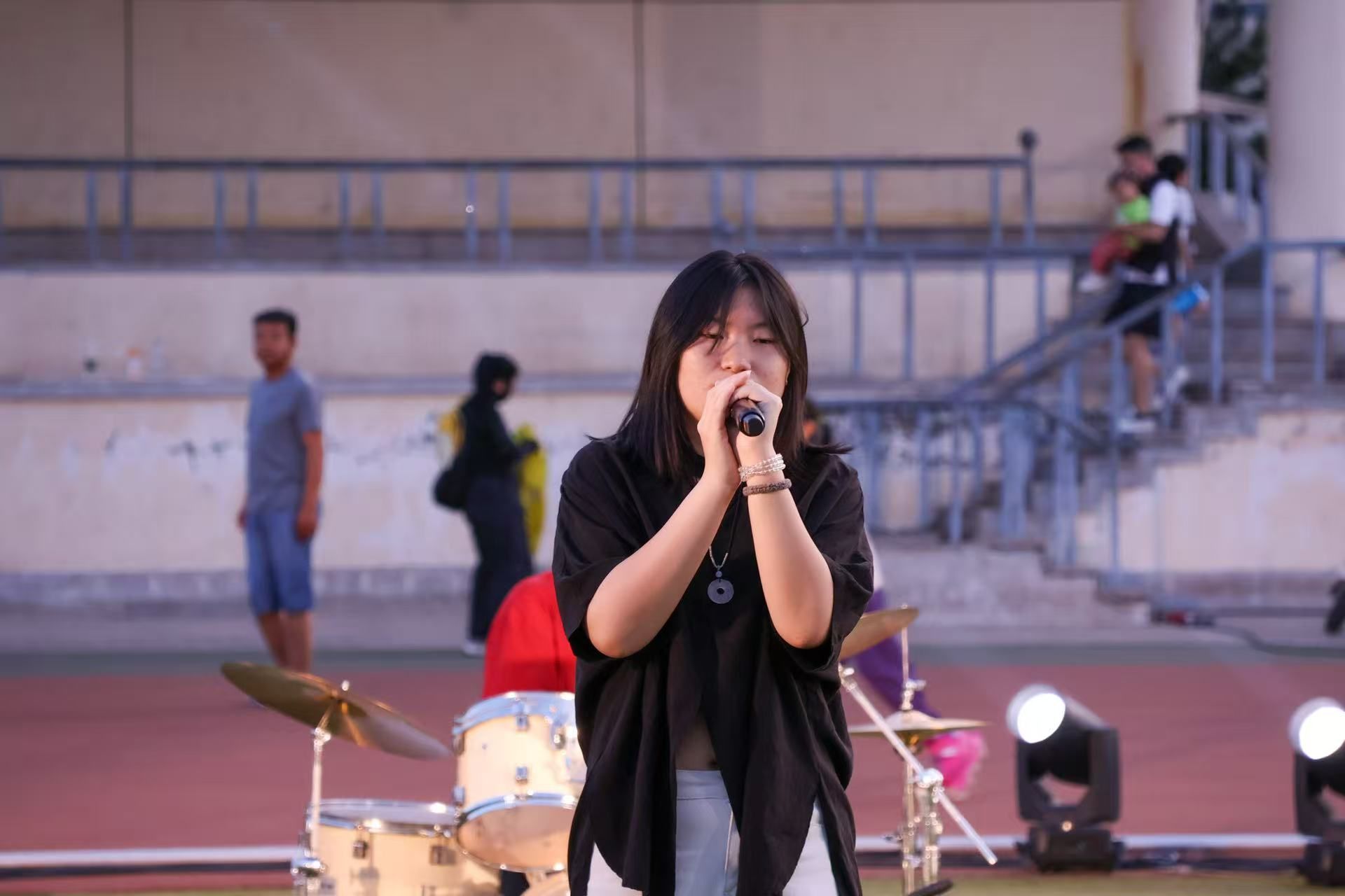 23 级农学二班汪少杰的《贝加尔湖畔》,将四年前的相遇比作 “贝加尔湖的晨雾”,如今的告别化作 “湖面的月光”,温柔歌声里满是对初心的眷恋。Em 乐队带来的经典歌曲串烧,串联起教室蝉鸣、自习室灯光等笑泪交织的片段,让全场沉浸在青春的共鸣中。