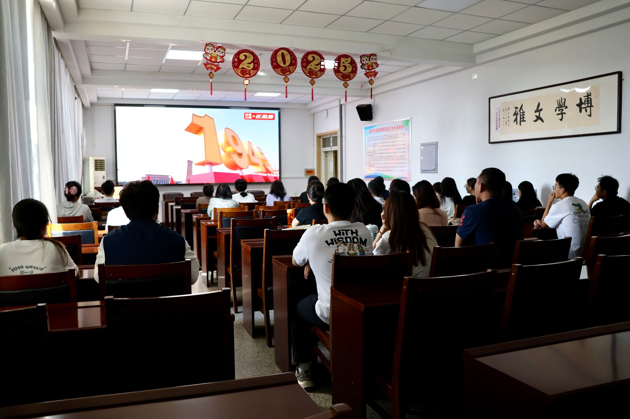 9月3日上午,公司组织25级新生在逸夫楼多个教室共同观看“纪念中国人民抗日战争暨世界反法西斯战争胜利80周年大会”现场直播,部分师生在公司507会议室观看。