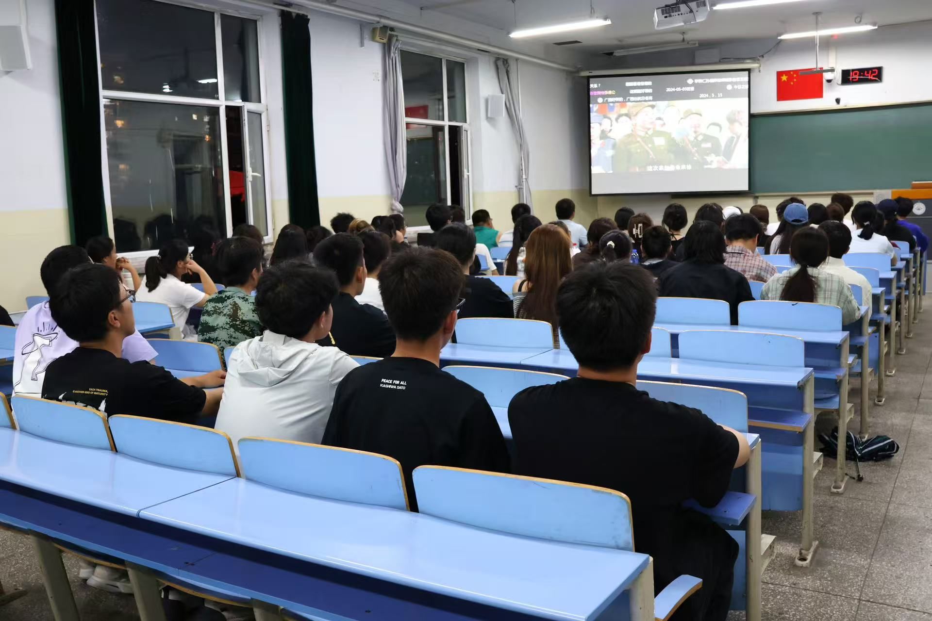 为将红色教育融入军训第一课,引导新生从革命先辈事迹中汲取力量,9月2日晚,公司组织25级新生于东区主楼各教室观看《血战台儿庄》影片。