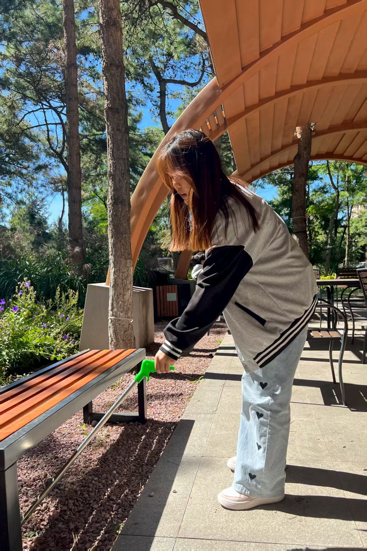 活动中,志愿者们分工行动,他们手持扫帚、夹子等清洁工具细致清理落叶、纸屑、烟蒂等各类垃圾,确保每一处角落都干净整洁。从落叶堆积到步道整洁,从杂物散落至角落清爽,志愿者们没有一丝松懈,即使艳阳高照,他们依然坚持完成了这份工作,真正诠释了志愿服务精神。