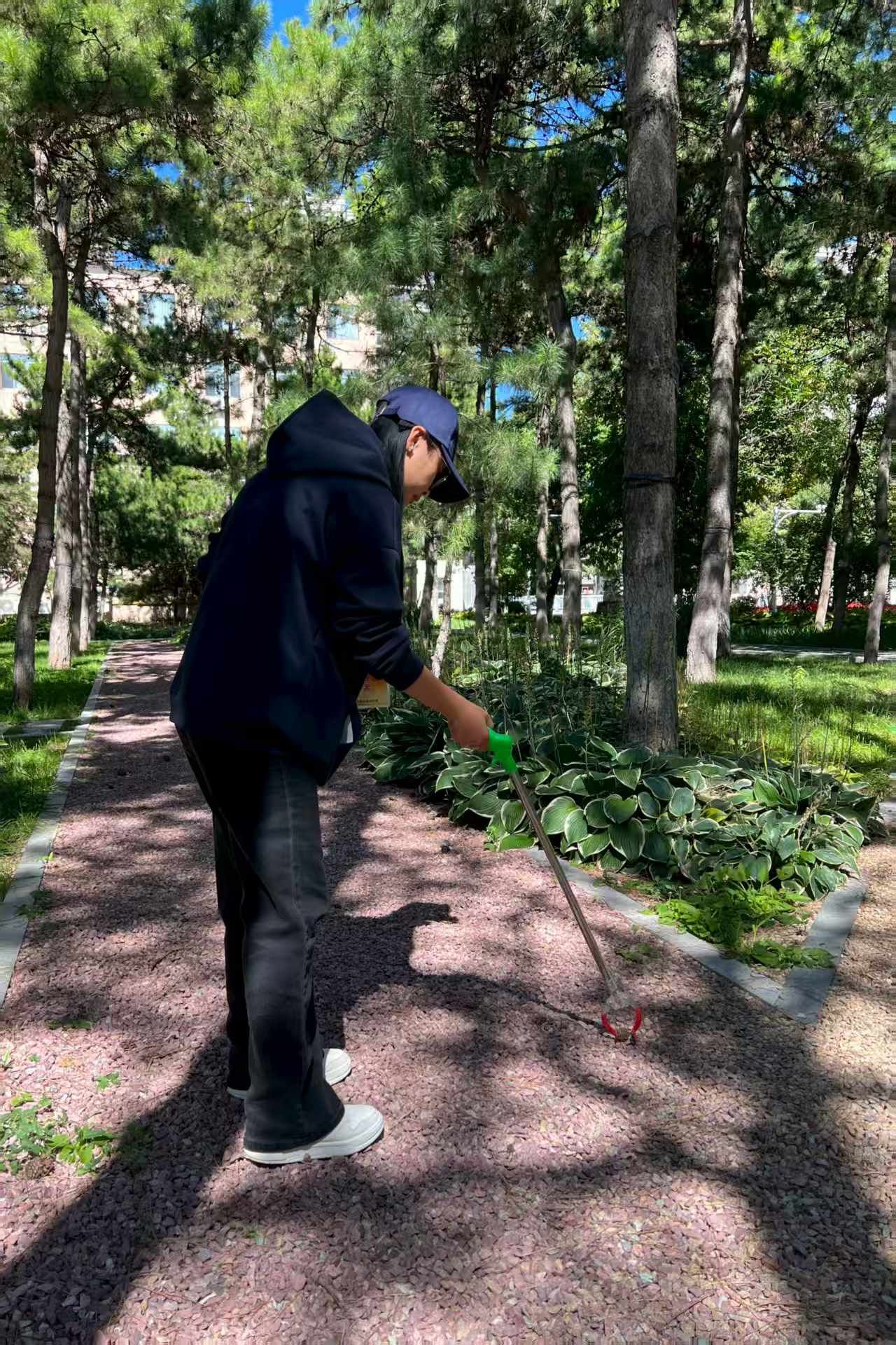 为营造整洁、优美的校园环境,增强同学们的环保意识,9月17日中午,公司志愿者在东区员工林开展了一次打扫员工林的志愿服务活动。参与本次活动的志愿者有24级智农一班王雨欣、常佳兴,24级种工一班闫星君,25级农学二班赵薇,25级植科二班李锐峰。
