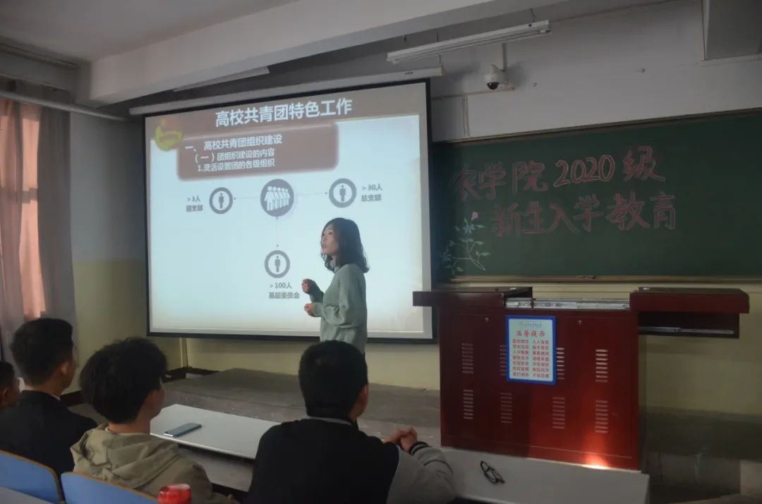 会议伊始,张海杰老师先给各位新生讲解了高校共青团特色工作,首先提到了高校共青团组织建设,从组织建设与教育管理两方面为大家讲解,也为各班团支书开展下一步工作做出指导。思想引导类工作也是高校共青团特色工作之一,包括团日活动,金马杯等各种大型比赛。高校共青团特色工作还有志愿者工作这一方面,每年都会带领本院同学参加三下乡与各种志愿者活动,在最后,张海杰老师还提到了对共青团员提出的6点要求,希望各位共青团员能努力充实自己,练就过硬本领。申鸣老师带领新生们对于课堂纪律、请假流程、处分处理、转专业等方面进行了详细解读,为新生们答疑解惑。