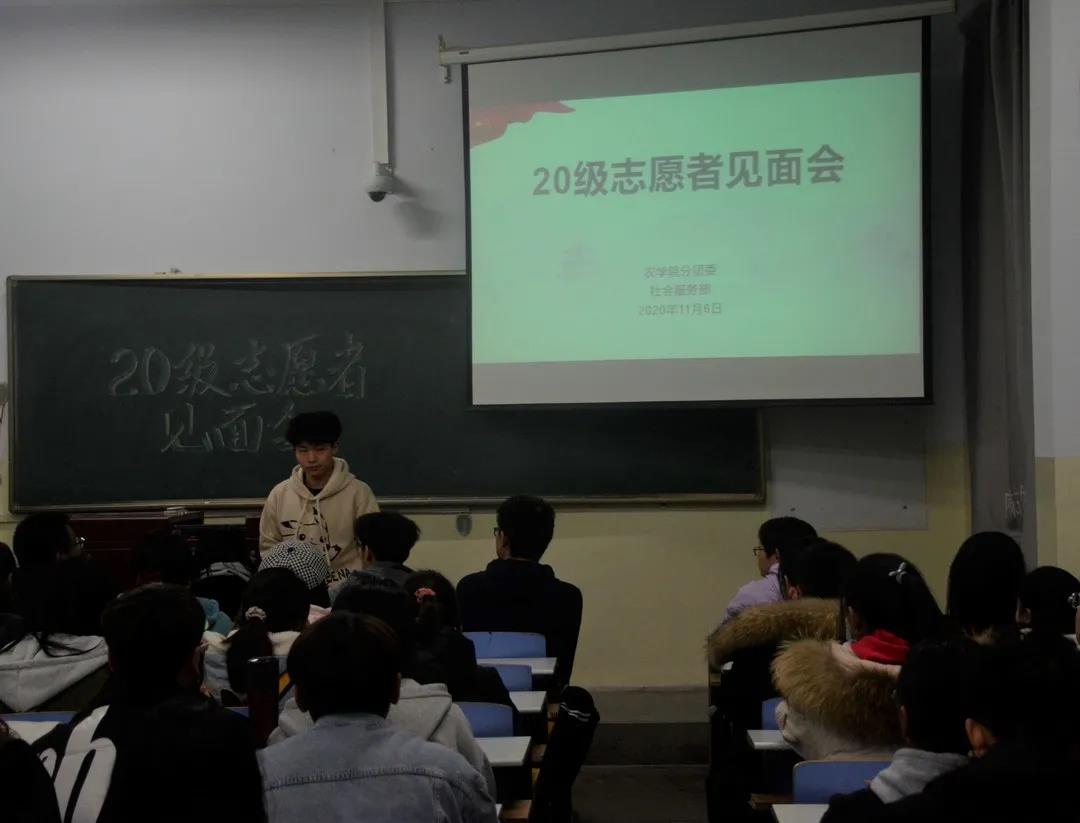 11月6日晚6:10公司于东主110教室开展了20级志愿者见面会。分团委副书记吴俊杰以及20级新生志愿者们参加本次见面会。