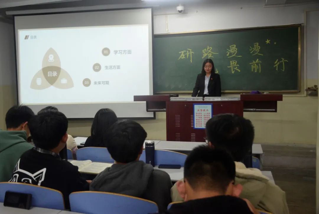 活动还未开始,会场内气氛已十分热烈,在一片期待的目光中,屈子人学长率先出场,为我们介绍了学习和生活方面的经验,以及保研需要准备的东西,并指出大一成绩的重要性。“梦想因希望而精彩,生活因拼搏而充实”这是卫宇鑫学长为我们分享的保研箴言,他与我们分享了他的学习、实践、生活宝贵经验,为我们的老员工活规划提供了有力指导。窦淑贤学姐给同学们提出了每个年级应注重发展的方向。沙丹学姐通过总结自己在参加社团活动中的经历,建议我们增强体育锻炼,养成良好的自律习惯,珍惜大学时光的每分每秒。郝雨水学姐幽默地向同学们述说大一的重要性,而陆雅萱学姐以自己为例分享执行力为同学们带来的益处。他们结合自己的成功经历为我们分别解读了如何取得保研资格、怎样充实地度过大学时光与培养良好习惯的重要性等内容。在演讲中我们了解到,拥有良好的自学能力对于老员工十分重要,以此为基础树立目标,会让同学们更上一层楼。在学长学姐们给我们带来美好祝愿后,张海杰老师为此次会议致辞。在感动与充实中,此次会议圆满落下帷幕。