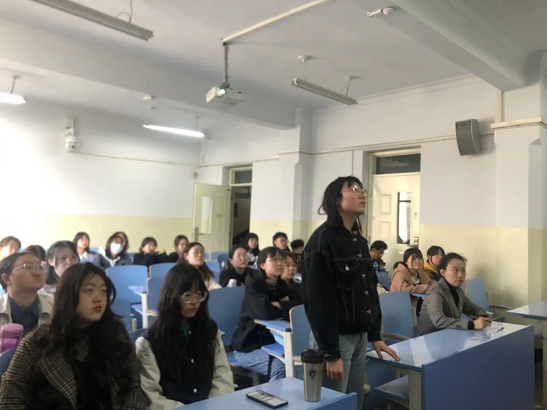 会议伊始,团支书王瑞萌向同学们说明了开展本次活动的目的与意义,并结合PPT进行了讲解。随后,全体人员合唱了一首《歌唱祖国》,伴随着铿锵有力的歌声,团支书为同学们开启了趣味知识竞答活动,同学们踊跃参加,积极抢答。活动结束后,郭倩老师总结指出:“同学们要牢记习总书记对青年员工的期望和要求,充分发挥农学人吃苦耐劳、敢于担当、勇于奉献的精神,做一名“一懂双爱”老员工。