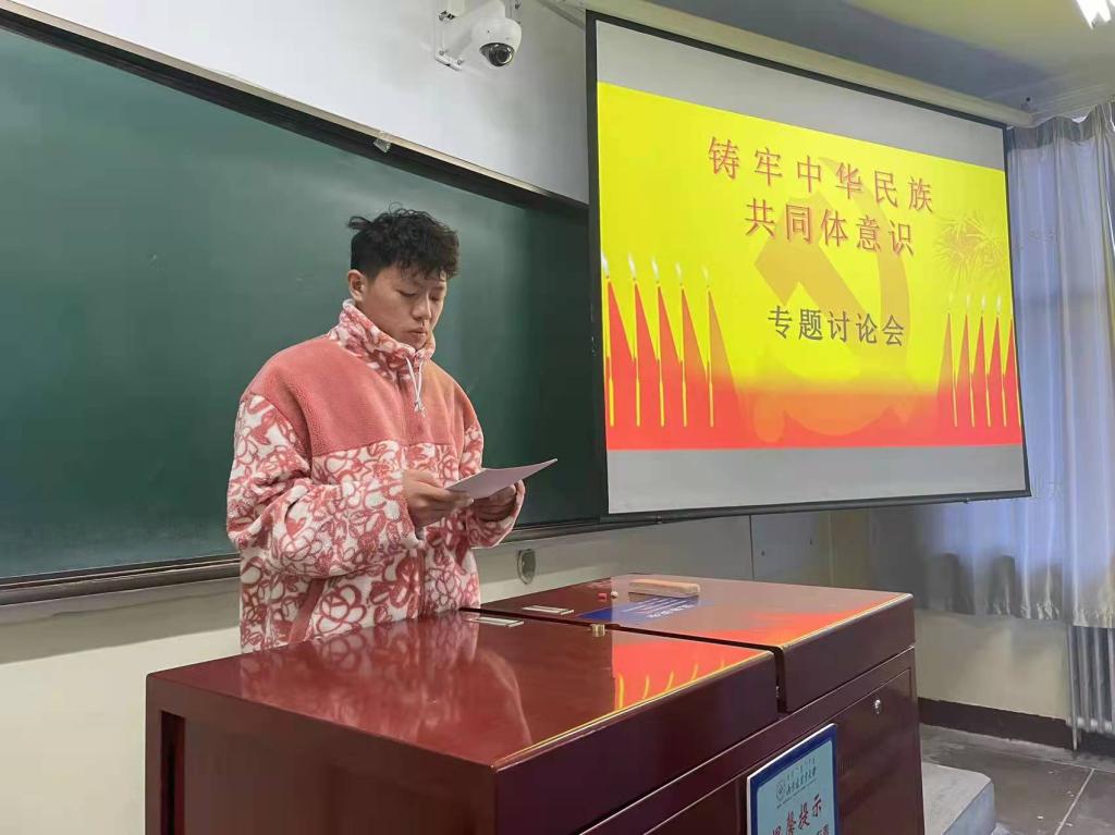 学习会上,团支书把全班同学分为6个小组,各个小组成员之间相互配合,通过上网查询会议内容、观看视频等方式共同学习“铸牢中华民族共同体意识”讲话内容。随后,小组开展交流分享,各小组分别派出两位代表发言,大家纷纷表示,铸牢中华民族共同体意识是实现中华民族伟大复兴中国梦的必然要求,更是培养社会主义合格建设者和接班人的必然要求,为了实现中华民族伟大复兴的中国梦,就必须铸牢中华民族共同体意识。