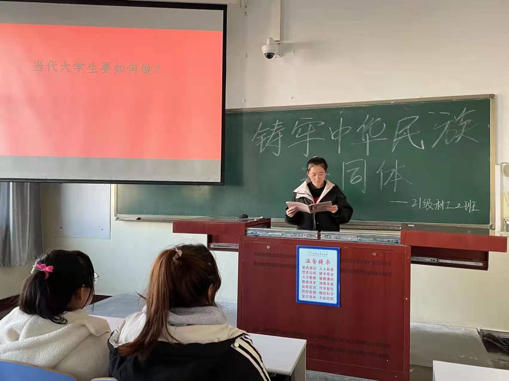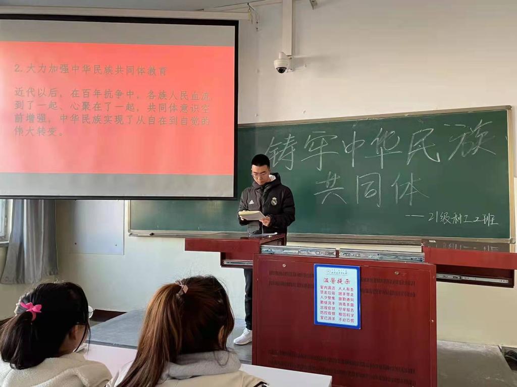 11月25日上午10点,21级种工二班于东区主楼416教室开展“铸牢中华民族共同体意识”主题教育。本班全体同学均到场参加。