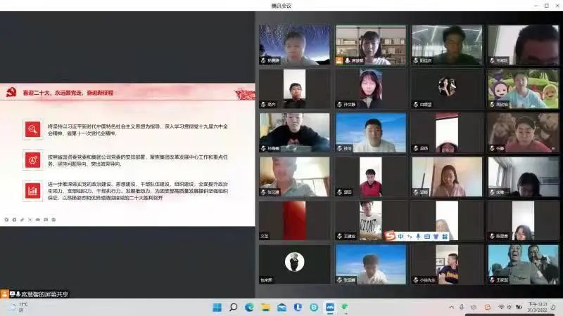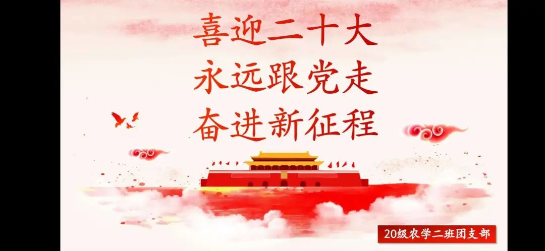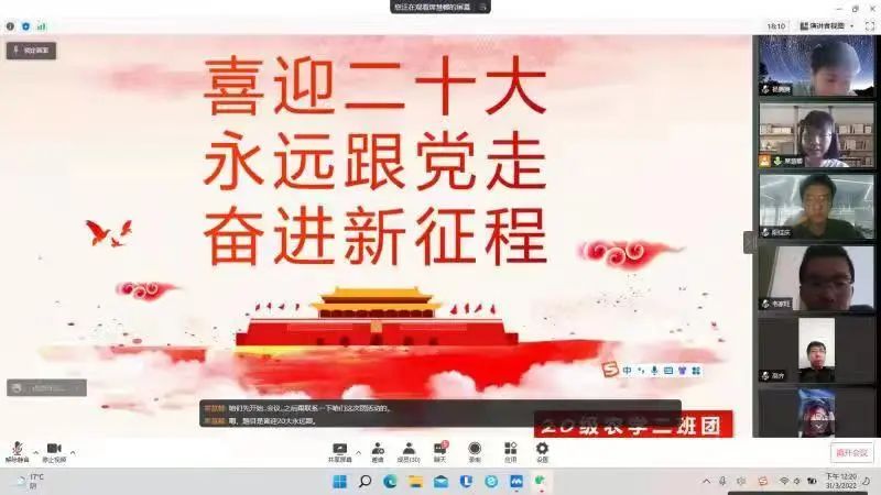 3月31日中午12:15,20级农学二班于腾讯会议开展“喜迎二十大、永远跟党走、奋进新征程”主题团日活动。全体同学均积极参加。