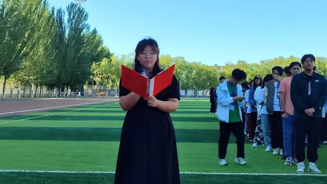 迎着朝阳,师生们相聚在国旗广场,升旗仪式正式开始。国旗护卫队昂首挺胸,护送五星红旗入场。随着国歌的奏响,全体师生向冉冉升起的国旗行注目礼。随后,2022级种工一班牛文卓作为员工代表进行“国旗下演讲”,她号召全体员工在即将到来的考试中自觉遵守考场纪律,坚决杜绝各种考试舞弊行为。