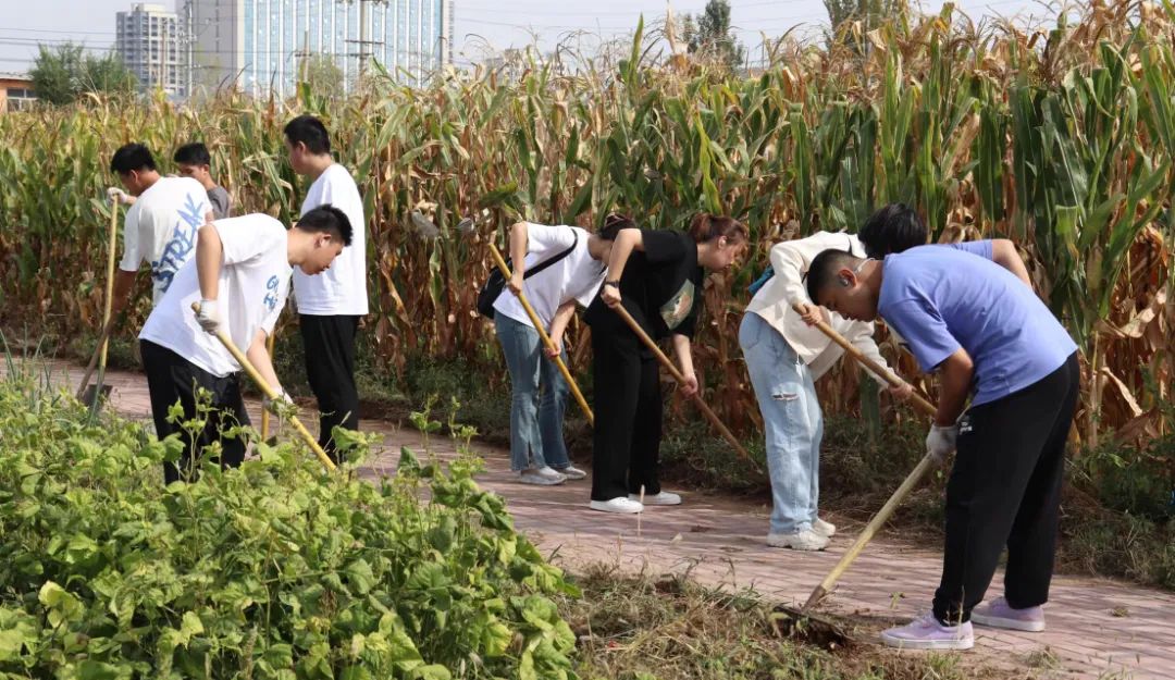 到达园区后,同学们拿着铁锹、锄头,在带队负责人细心地示范下,认真铲除杂草,清理环境。经过两天的劳动,园区变得干净整洁,同学们都表示十分开心,很有成就感。