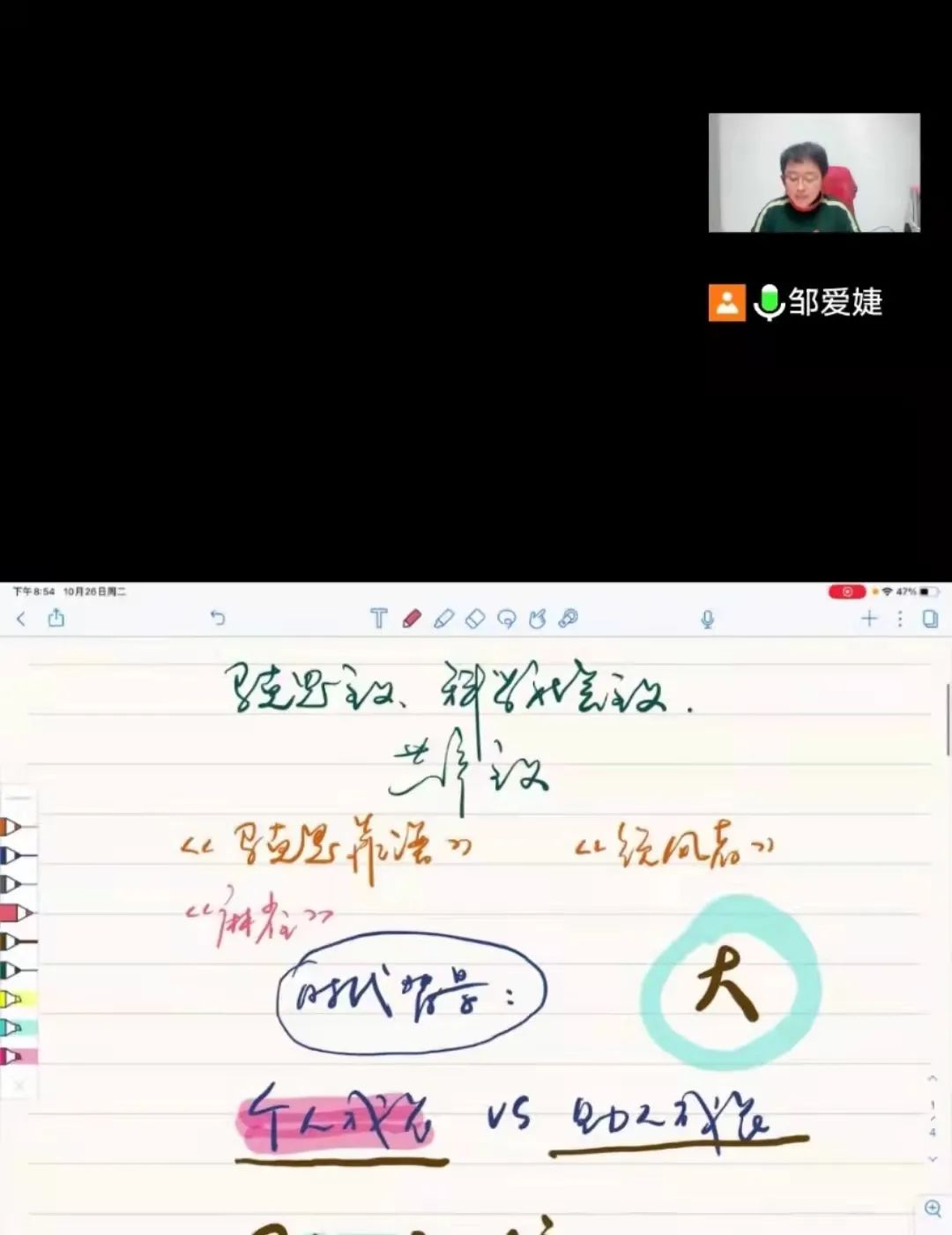 在张海杰老师简单的开场介绍下,邹爱婕老师以“青年人的信仰”为主题开讲,她通过播放一段博主的入党初心视频,引出“青年人的入党动机是什么?”这个话题。随后,邹老师为同学们推荐哲学书籍《马克思靠谱》,此书揭示了马克思伟大思想的同时贯穿介绍了马克思的求学、爱情、择业、友谊和工作历程等。邹老师表示,希望学员阅读此书后,能够帮助大家树立正确的择业观,确立明确的奋斗目标。同时,也希望同学们有信仰、有追求,能够成为自己想成为的人,遇见更好的自己。至此,本次党课圆满结束。