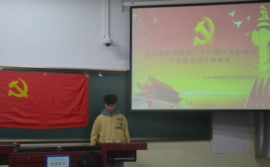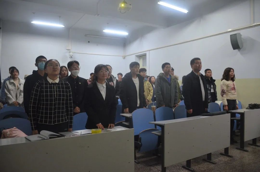 开班仪式由全体人员奏唱国歌后正式开始。随后,郭文瑞老师向积极分子学员提出了以下期望:一是希望同学们端正入党动机,努力提高政治觉悟;二是希望同学们可以认真学习党的基本知识,不断强化理论水平;三是希望同学们做到在生活和学习中严格要求自己,发挥模范带头作用,努力把自己培养成党和人民需要的新时代高素质人才。最后,入党积极分子培训学员代表刘泽渊同学进行发言,他讲到,要加强党的方针的学习,将党的精神落实到行动上,并且不断提高自身素质,努力成为一名新时代的先进青年。